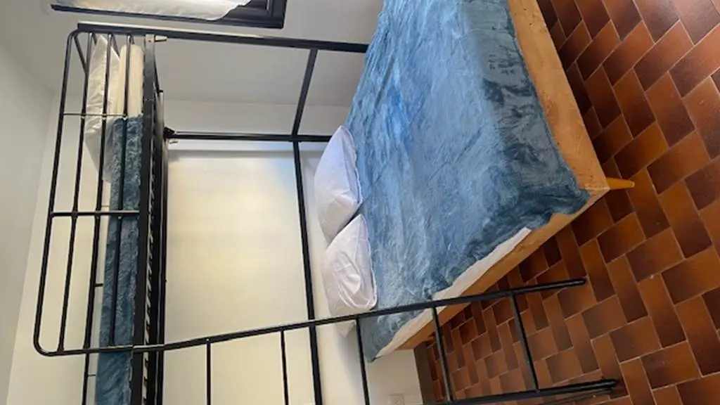 1 dormitorio con literas : inferior 140 x 190. Superior 90 x 190. Gran espejo en la puerta.